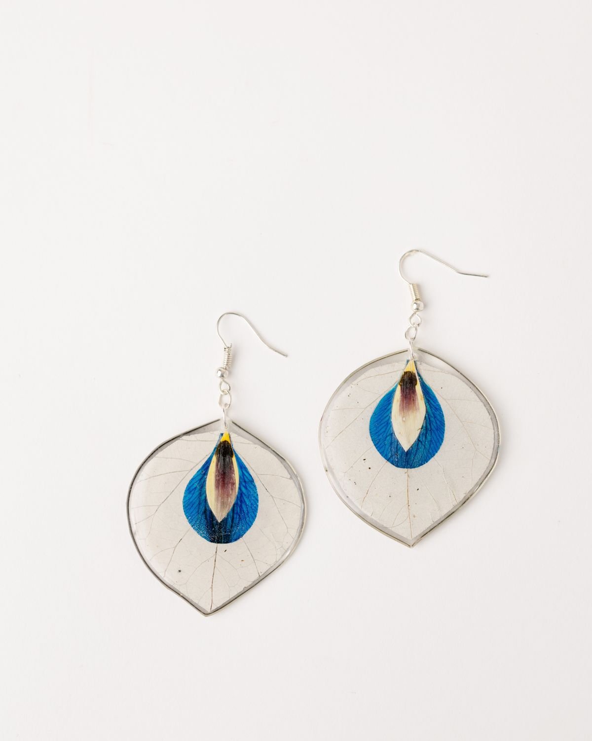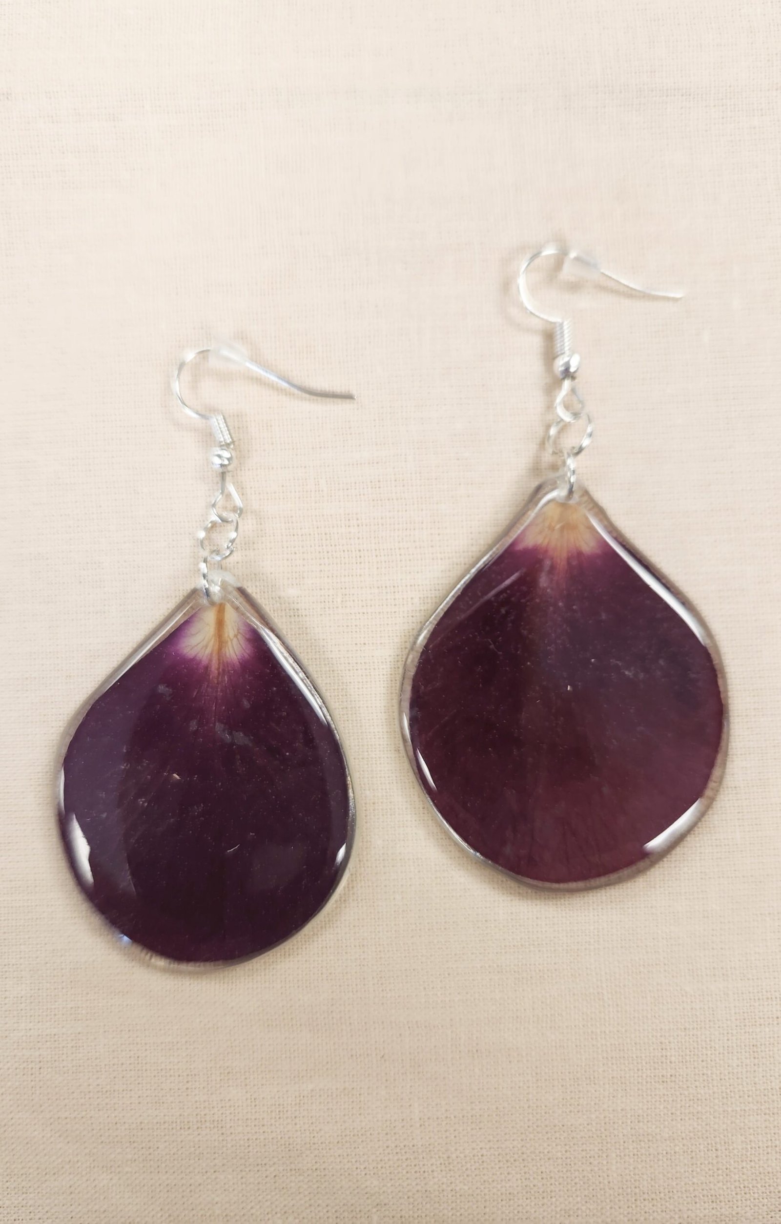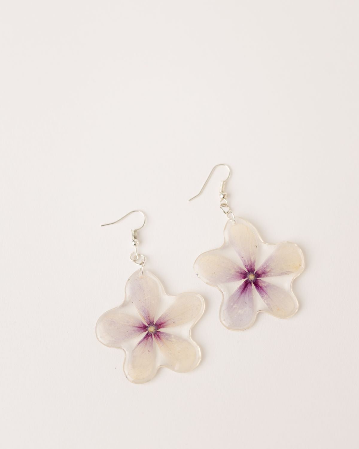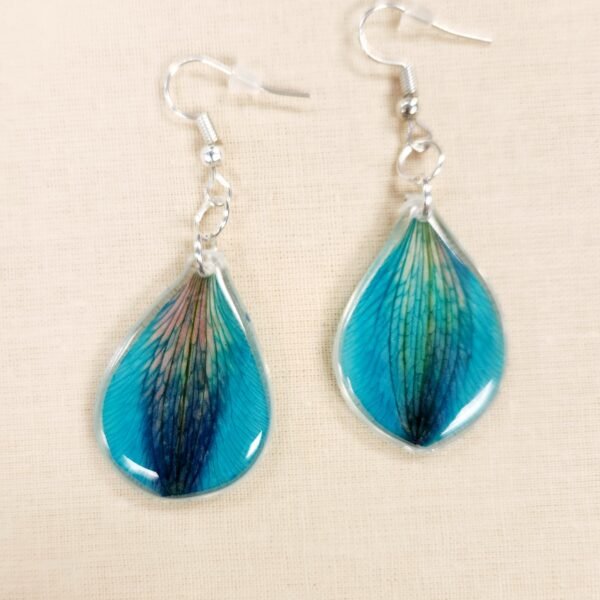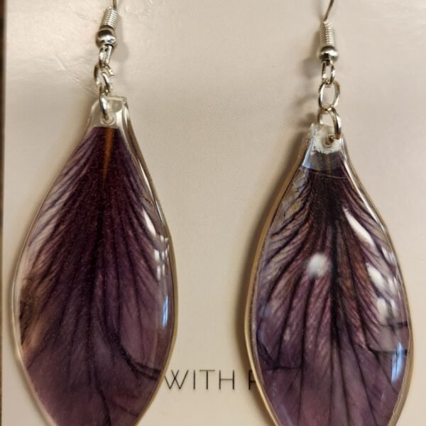All these beautiful earrings feature real flower petals set in resin. and all are finished with fine silver.