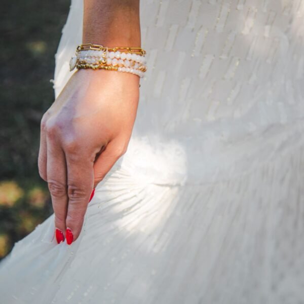 • White set – white glass beads and gold plated brass beads